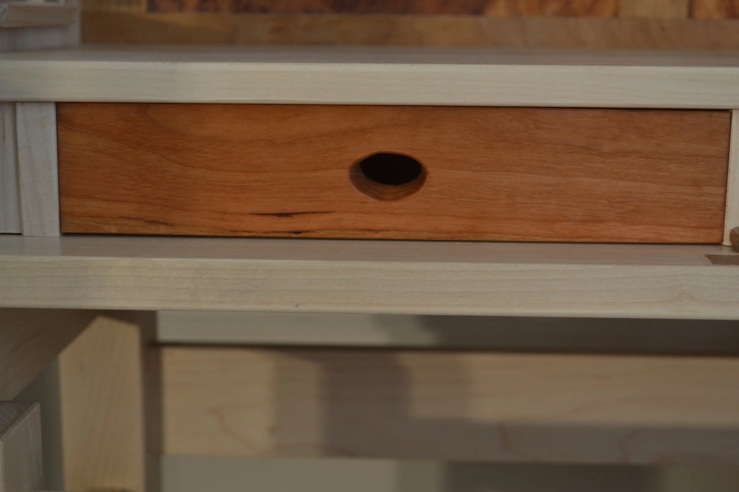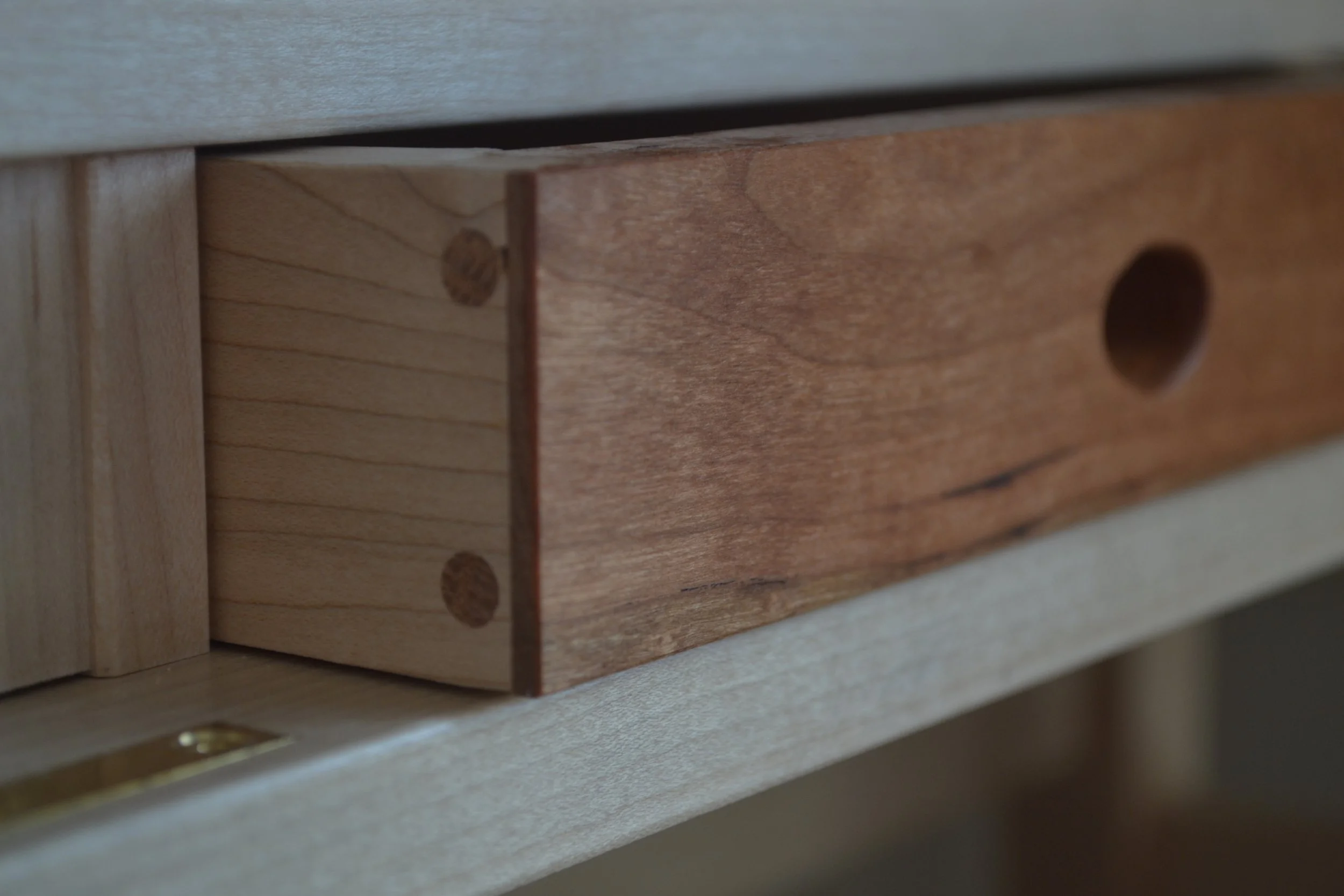 Storage Below: The lower portion includes simple yet refined drawers, built with half-dovetailed dowel joinery.